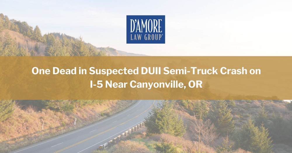Un fallecido en un accidente de camión en la I-5 cerca de Canyonville (Oregón), presuntamente causado por conducir bajo los efectos del alcohol
